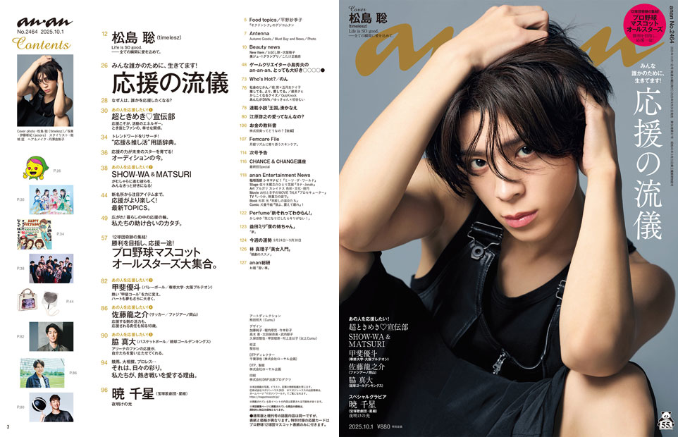 『anan No.2464』『anan No.2464増刊』『anan No.2464 応援の流儀 Special Edition』は、表紙と特別付録の内容のみが異なり、そのほかはすべて同一です。