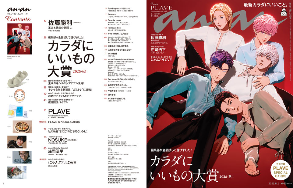 anan2469号とanan2469号スペシャルエディション(増刊号)は、表紙と特別付録の有無のみが異なり内容はすべて同一です。