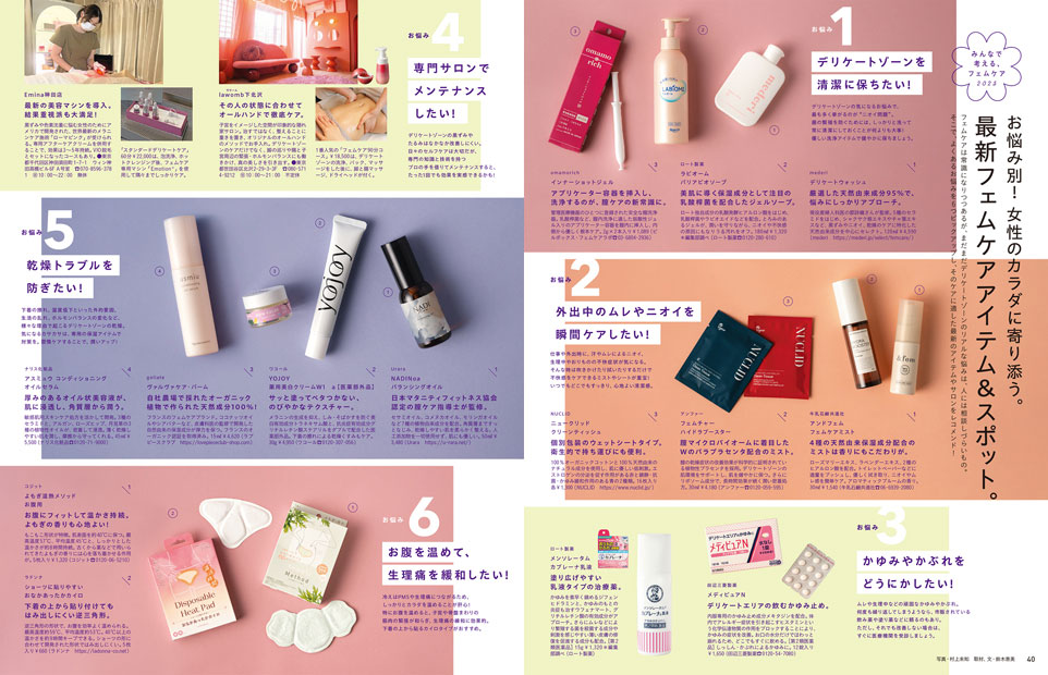 お悩み別! 女性のカラダに寄り添う。 最新フェムケアアイテム&スポット。 |