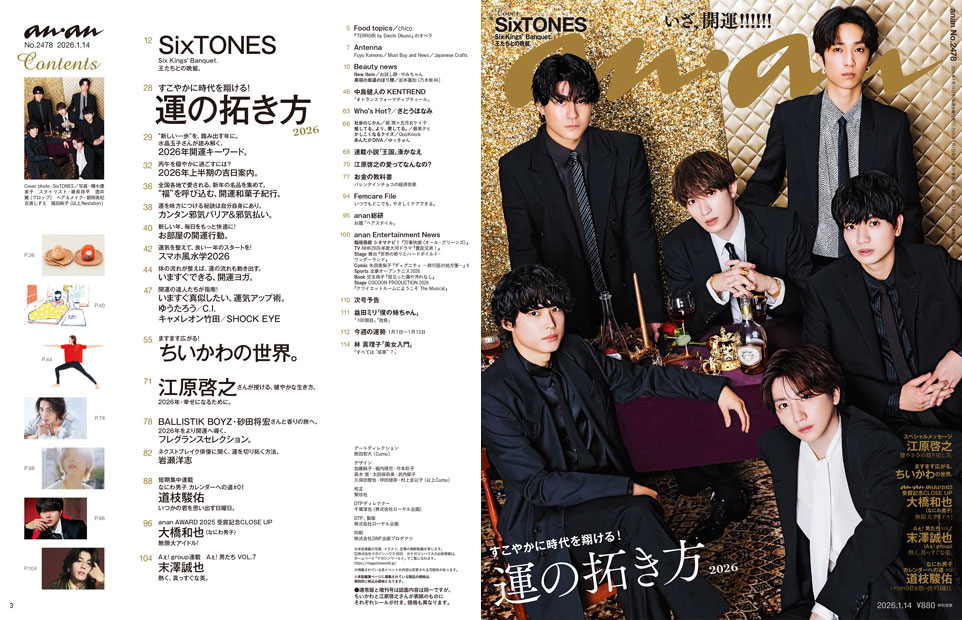 『anan No.2478』『anan No.2478増刊』『anan No.2478 Special Edition』は、表紙と特別付録の有無のみが異なり内容はすべて同一です。