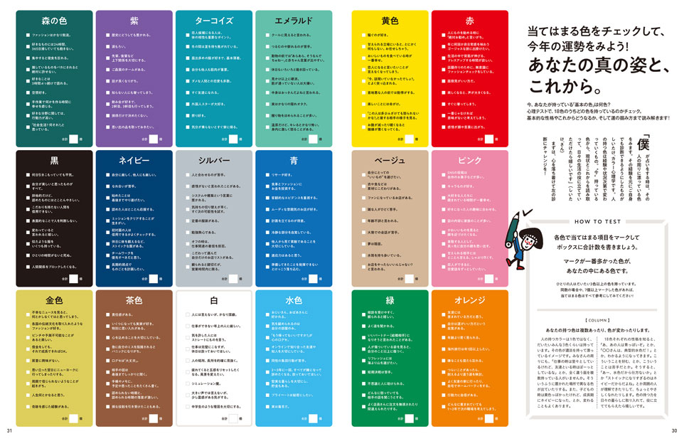 当てはまる色をチェックして、今年の運勢をみよう! あなたの真の姿と、これから。 |
