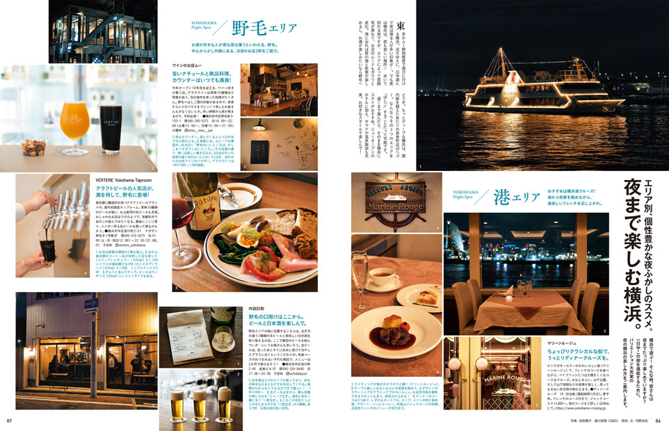 エリア別、個性豊かな夜ふかしのススメ。 夜まで楽しむ横浜。 |