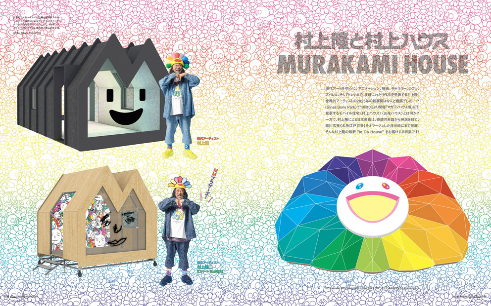 現代アートを中心に、アニメーション、映画、ギャラリー、カフェ、アパレル、そしてトレカまで、多岐にわたり作品を発表する村上隆。世界的アーティストの2025年の新展開はなんと建築でした…!? 〈Ginza Sony Park〉で10月10日より開催『マガジンハウス博』にて発表するモバイル住宅〈村上ハウス〉〈お花ハウス〉とは何か? 一方で、村上隆による日本美術は、奇想の系譜から琳派を経て、歌川広重《名所江戸百景》をオマージュした浮世絵にまで発展。そんな村上隆の最新 “In Da House” をお届けする特集です!