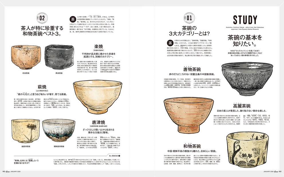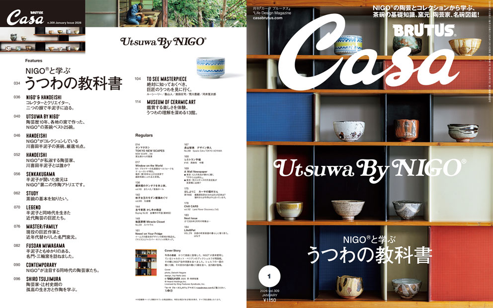 ヴィンテージのウェア、家具、トイなど、様々な趣味をたしなんできたNIGO®さんが、近年ご執心なのは、なんとうつわでした!? 2015年に作陶を本格的に始め、名碗を集めていく中で出会ったのが、「東の魯山人、西の半泥子」と称された実業家で陶芸家の川喜田半泥子でした。近代陶芸に大きな足跡を残した半泥子に私淑するNIGO®さんは、師と同様に土を取り寄せてはろくろをまわし、各地の窯元に足繁く通っては、井戸茶碗から、萩焼、唐津焼、黄瀬戸、志野、伊賀、そして樂茶碗まで、幅広いスタイルの茶碗を作陶しています。そこで、NIGO®さんの陶芸や収集した近代から現代までの名碗コレクションを通じてうつわの基本とその奥深い世界を学びましょう。