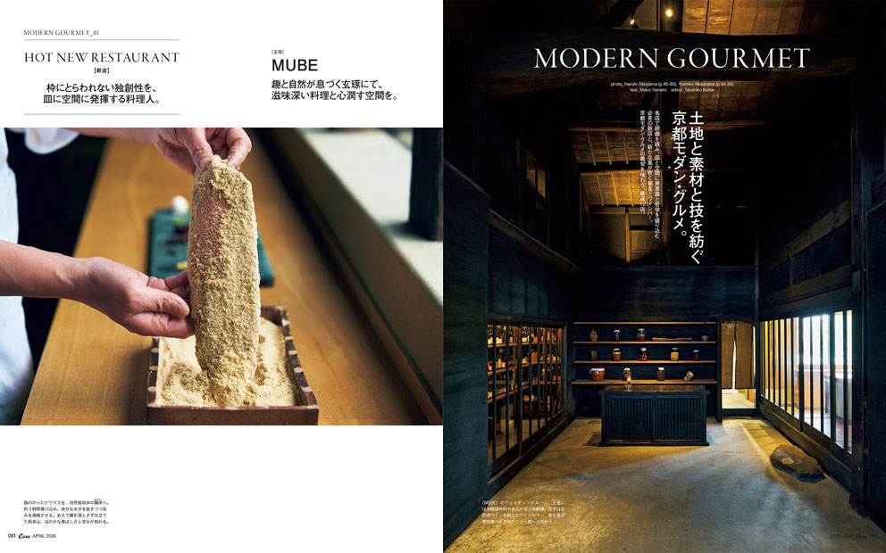 MODERN GOURMET 土地と素材と技を紡ぐ、京都モダン・グルメ。 [HOT NEW RESTAURANT] 枠にとらわれない独創性を、皿に空間に発揮する料理人。 [BREAKFAST] 京都の朝グルメがさらに進化しています。 [WINE BAR] 互いを引き立て合う、ワイン+αの世界へ。 |