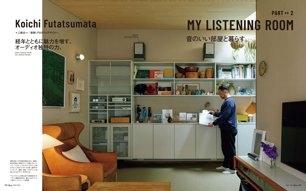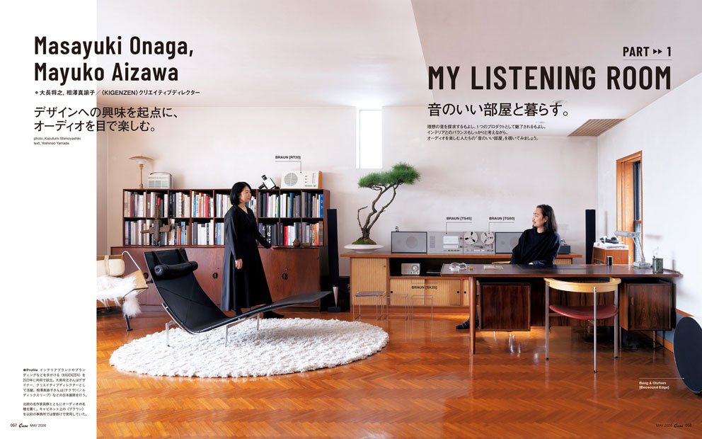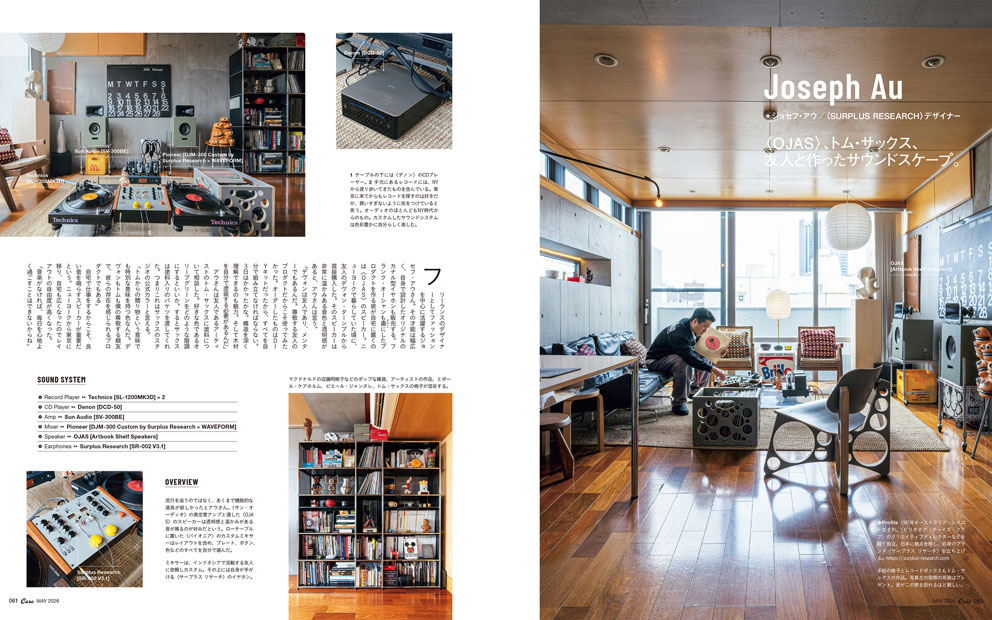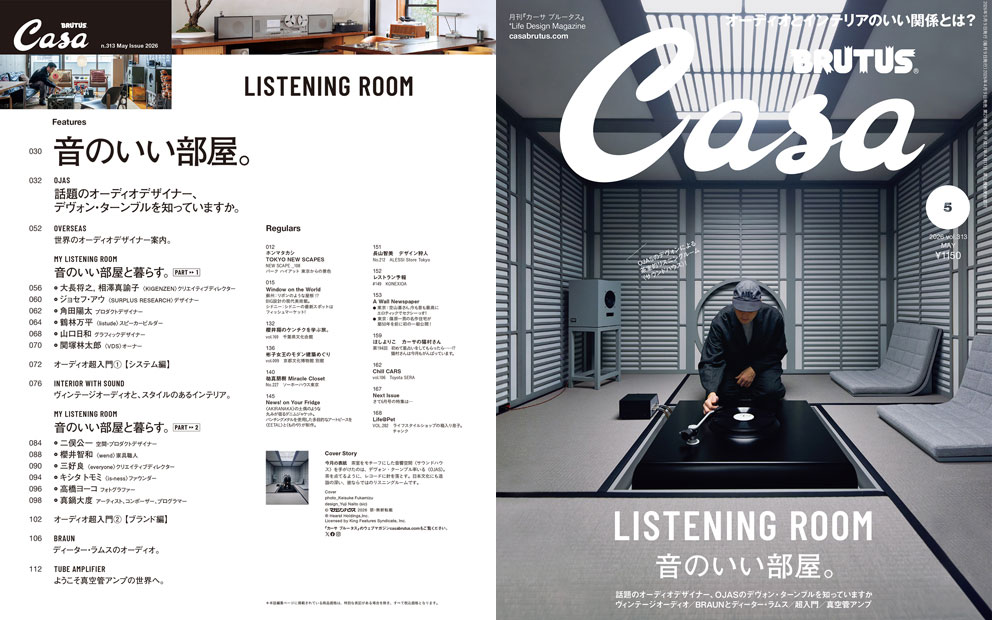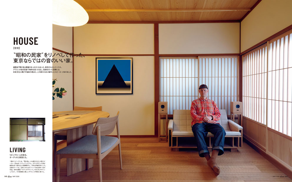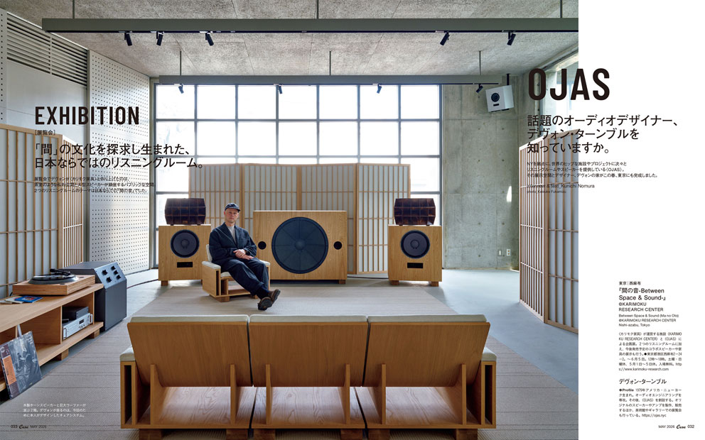 居心地のいい部屋はモノだけで作ることはできず、そこに流れる空気や匂い、そして音こそ大事なのではないか。そのような問いかけから始まった2017年のMOOK『音のいい部屋。』現在はオーディオとデザインやカルチャーがさらに接近しています。最先端はNYのオーディオデザイナー、デヴォン・ターンブル率いる〈OJAS〉。そのリスニングルームやスピーカーはアメリカの現代美術館やデザイン博物館から、Supreme、NIGO®︎の〈NOT A HOTEL TOKYO〉にまで採用されるほどです。そんなデヴォンはこの春、東京に「音のいい部屋」をリノベーションで完成させ、〈KARIMOKU RESEARCH CENTER〉では『間の音』という展覧会まで開催。そこで、最新のリスニングルームを通して、理想の「音のいい部屋」を探ります。