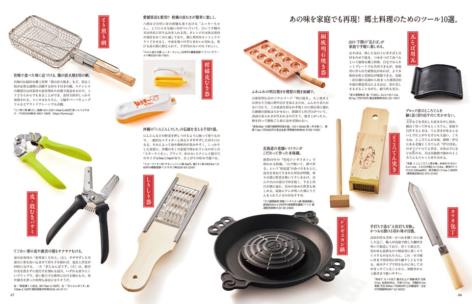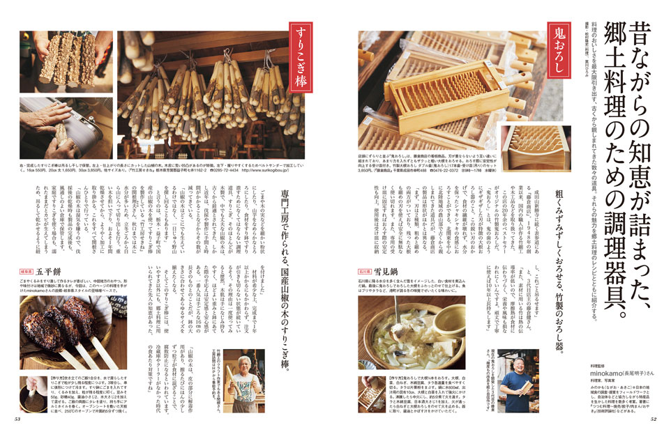 昔ながらの知恵が詰まった、 郷土料理のための調理器具。 |