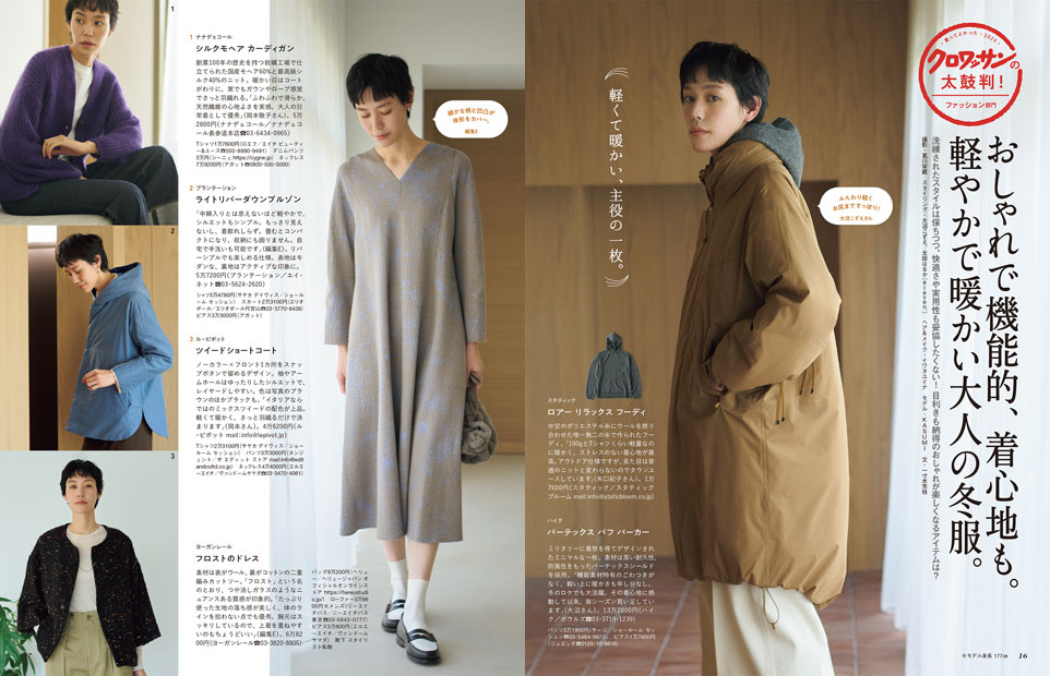 おしゃれで機能的、着心地も。 軽やかで暖かい大人の冬服。 |