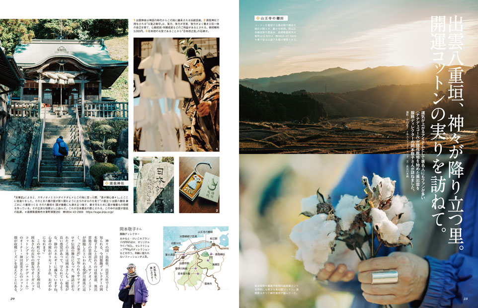出雲八重垣、神々が降り立つ里。 開運コットンの実りを訪ねて。 |