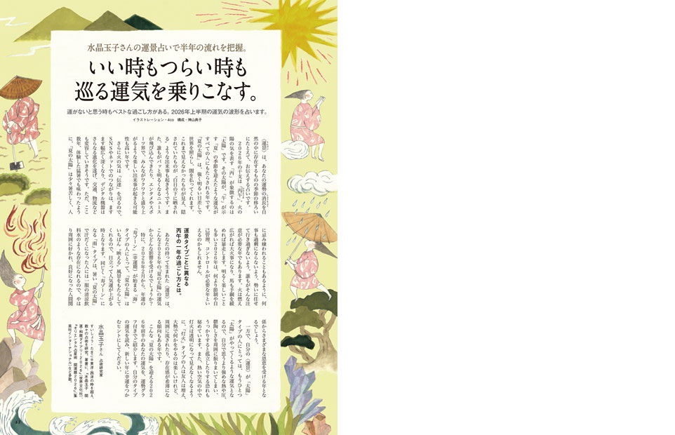 水晶玉子さんの運景占いで半年の流れを把握。 いい時もつらい時も巡る運気を乗りこなす。 |