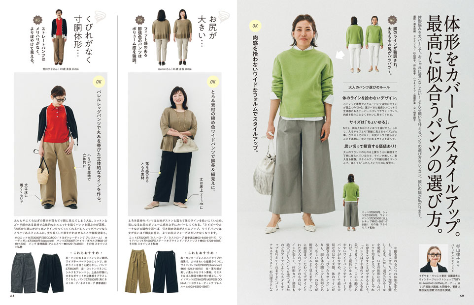 体形をカバーしてスタイルアップ。 最高に似合うパンツの選び方。 |