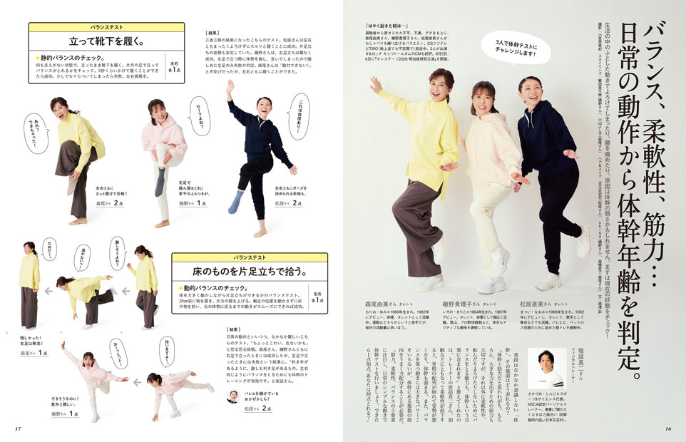 バランス、柔軟性、筋力… 日常の動作から体幹年齢を判定。 |