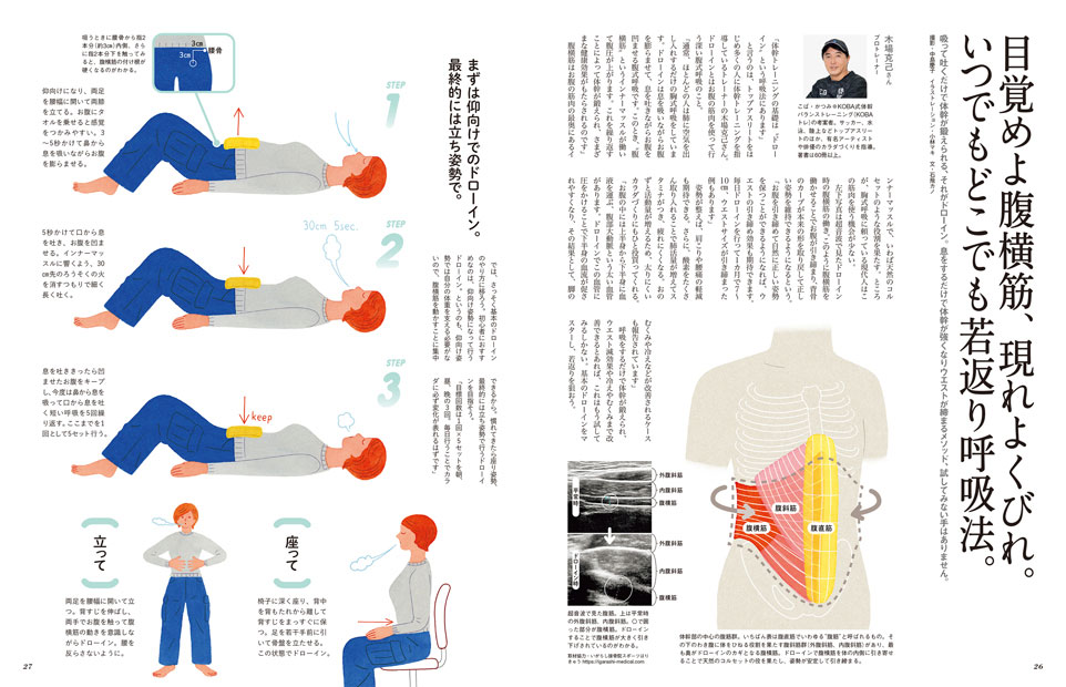 目覚めよ腹横筋、現れよくびれ。 いつでもどこでも若返り呼吸法。 |