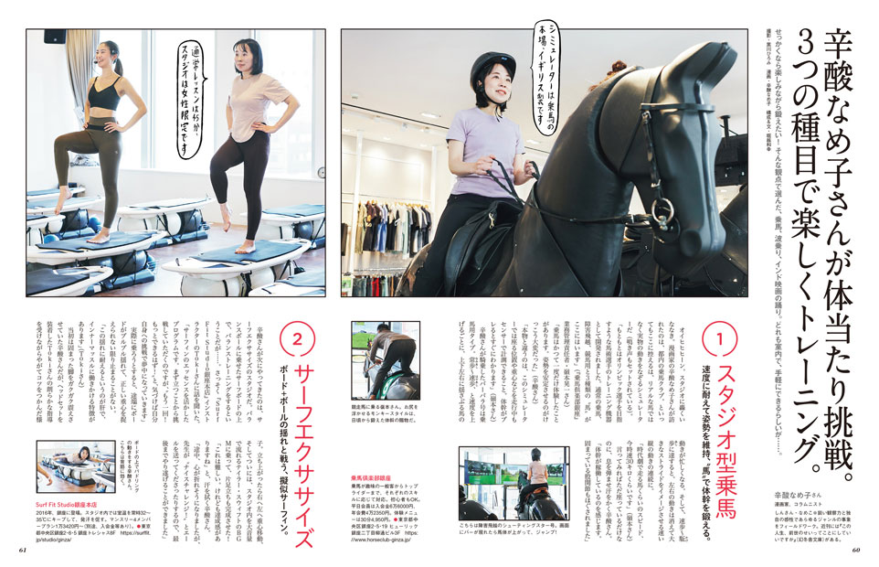 辛酸なめ子さんが体当たり挑戦。 3つの種目で楽しくトレーニング。 |