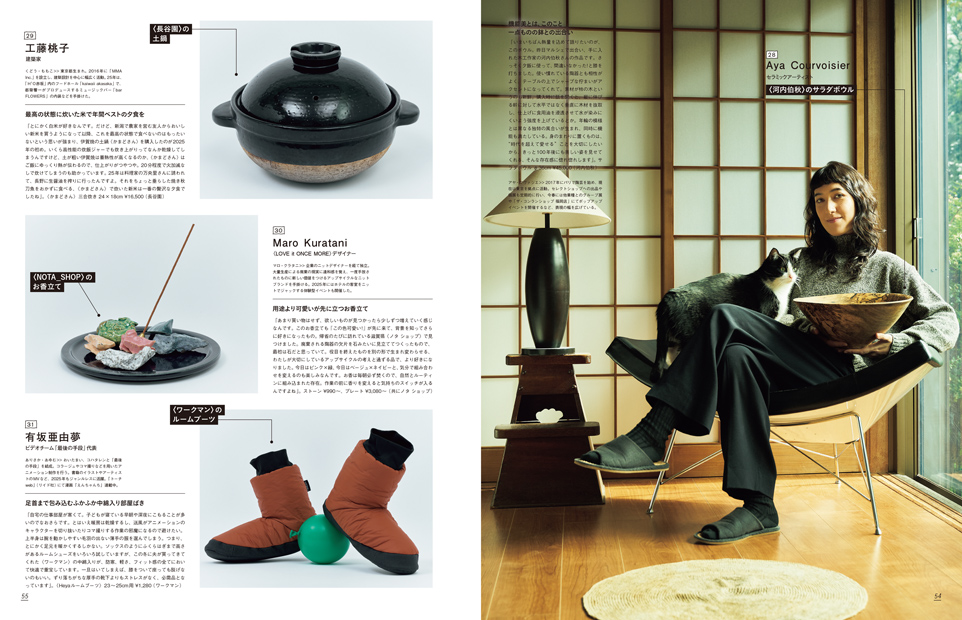 | 062 | 気鋭デザイナーたちの愛用品 〈kotohayokozawa〉〈RITSUKO KARITA〉〈KAKAN〉〈NOHRA〉 |