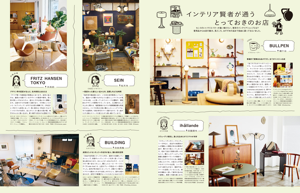 | 058 | インテリア賢者が通うとっておきの店 unpis、sasamoto natsuki、Hitomi Coco Konno、中島沙希、中井彩乃 板坂留五、若井ちえみ、白井里奈、和井田多佳、片山久美子 |