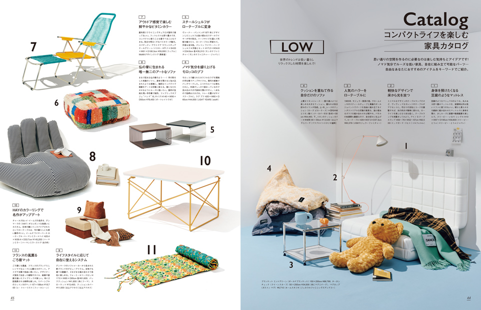 | 044 | LOW、PLAYFUL、PORTABLE…トレンドから見る コンパクトライフを楽しむ家具カタログ |