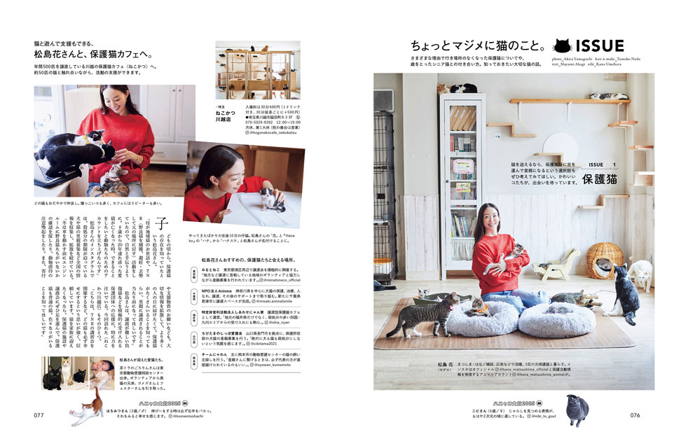 ISSUE|ちょっとマジメに猫のこと。 ①保護猫について …076 / ②高齢猫について …080 |