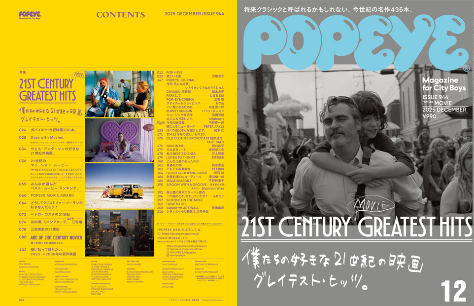 | 036 | 21世紀の マイ・ベスト・ムービー MY BEST MOVIES OF THE 21ST CENTURY ポパイが信頼する映画好きに聞いた、今世紀のベスト5。 なかでもお気に入りの一本を、じっくり語ってもらった。 |